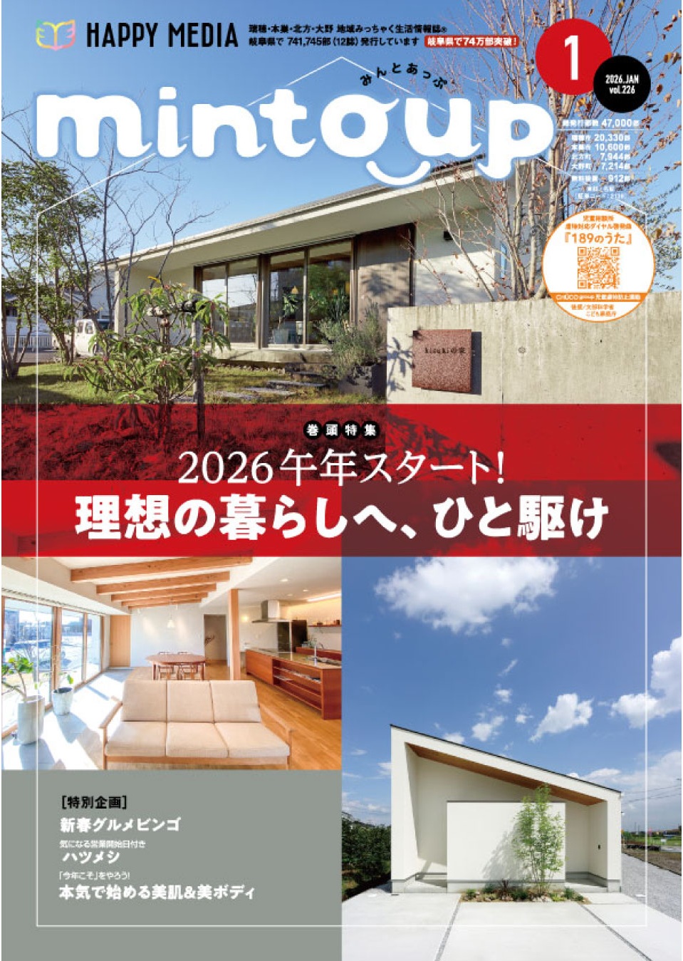 2026年は、僕の設計デザインのよる注文住宅により力を入れるべく、『mintoup』さんの1月号に掲載させて頂きました。
